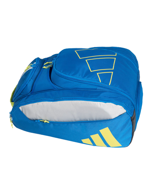Adidas Multigame Blue 3.3 2024 padel bag with a large central pocket. On both sides...