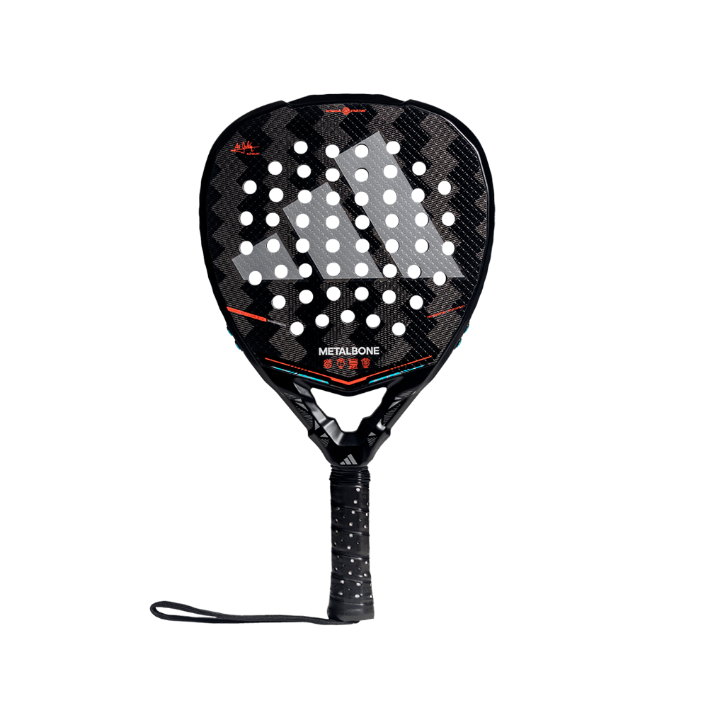 Total power in a single racket. The adidas Metalbone 2026 racket — Ale Galán’s choice — elevates innovation with the Weight & Balance System, letting you personalize balance and feel to match your strategy at every moment. The Octagonal Structure and Low Poly design provide stability and unstoppable acceleration on every shot, while Carbon Aluminized 16K unlocks explosive power with total confidence. Spin Blade Decal features a textured surface that enhances control and allows you to generate more spin on every shot. The low-density Soft Performance EVA core provides excellent ball output and consistent comfort throughout play. Extra Power Grip, with its extended grip length, increases the racket’s inertia and boosts power in decisive shots. Developed with Ale Galán, this racket is built for players who demand performance, control, and power on every point. This year we are introducing an exciting new product: the new adjustable rope cord with a padded wrist strap, which ensures maximum comfort on the wrist.