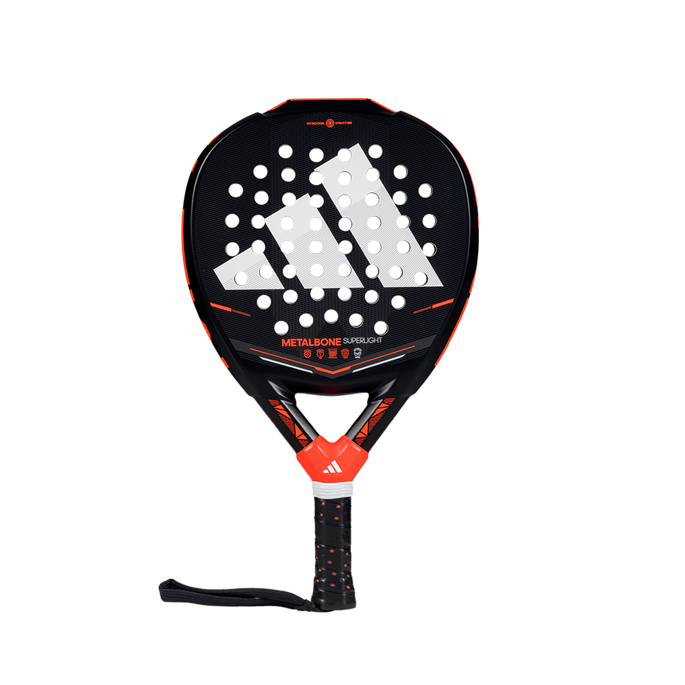 Discover how easy padel can be with the adidas Metalbone Superlight 2026. Its lightweight construction, featuring Octagonal Structure and structural reinforcements, combines stiffness and stability, reducing torsion and making every shot more precise. The Diamond Oversize shape offers higher balance and a larger hitting surface, increasing power on offensive shots and making control easier throughout the rally. Soft Performance EVA and fiberglass provide a comfortable feel and consistent ball output, while the Smart Holes Curve design helps generate more spin on every shot. This light and balanced racket enables quicker, smoother movements, helping beginner players improve their game and gain confidence from the first point. And this year, as a major new feature, we are adding an adjustable rope cord to our paddles for a better grip on the wrist.