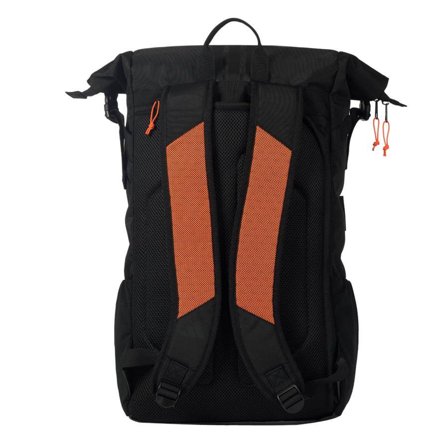 The perfect everyday backpack, designed with a main compartment with adjustable volume thanks to its innovative ‘Rolltop’ opening. Inside, you'll find a special pocket for delicate items and a divider ideal for your computer or racquet. In addition, there are two elastic mesh side pockets to carry your water bottles and two padded compartments: a front one with thermal insulation and a back one to protect your laptop safely. Its reinforced bottom ensures exceptional durability, while the adjustable padded mesh straps and back panel ensure comfortable carrying.