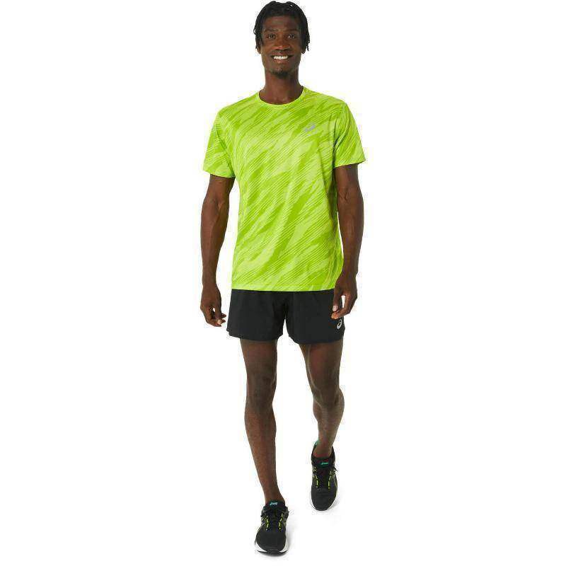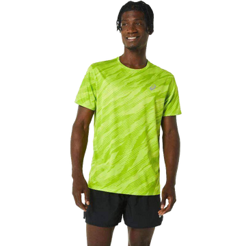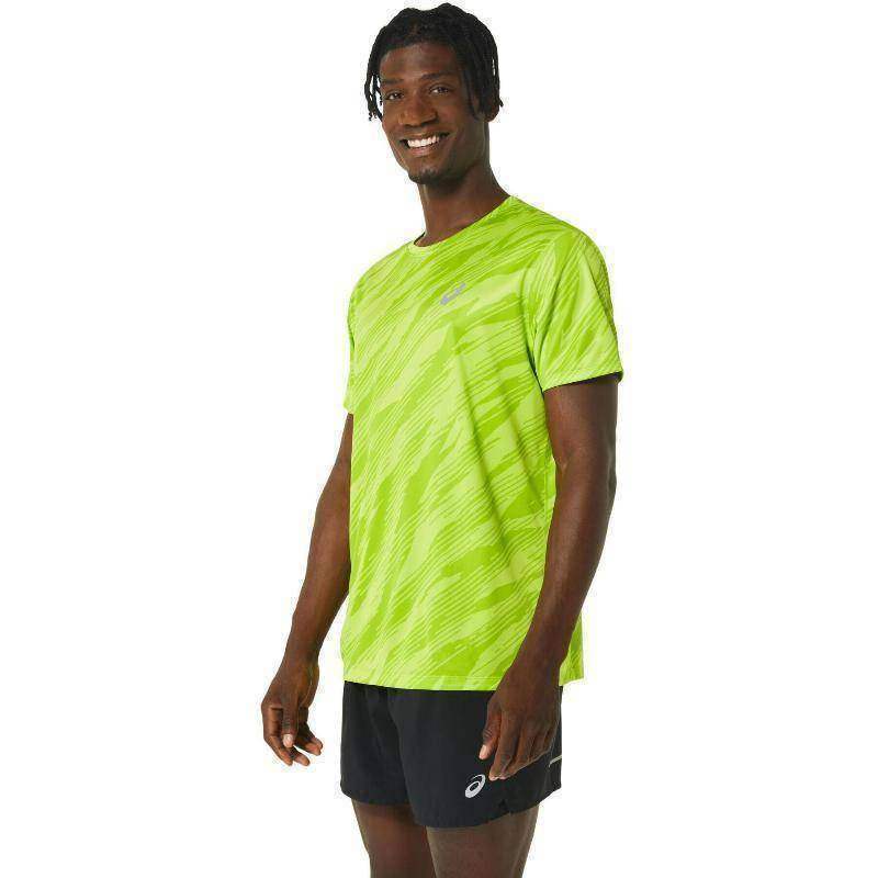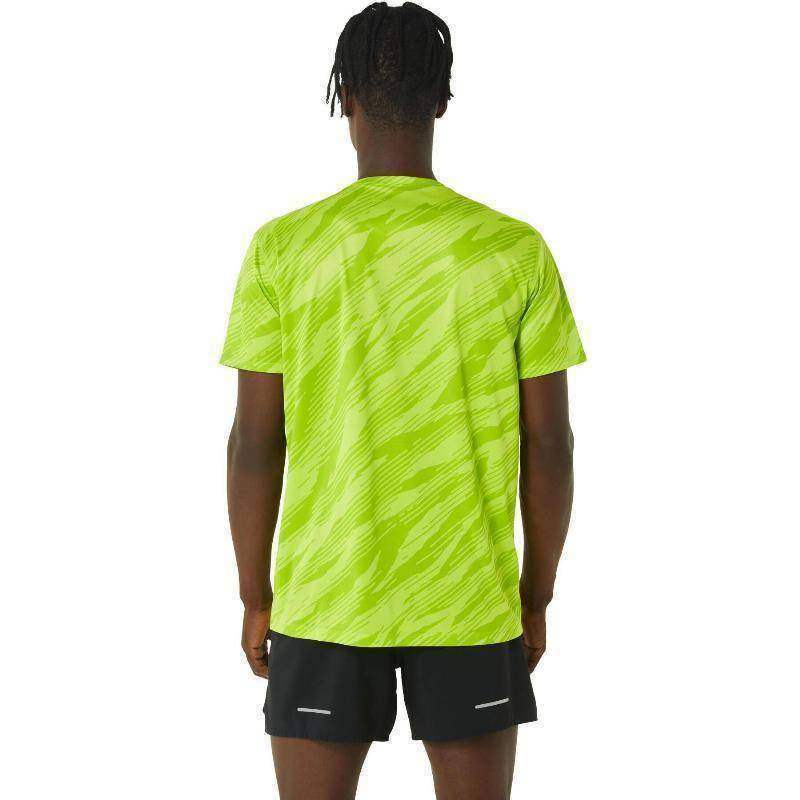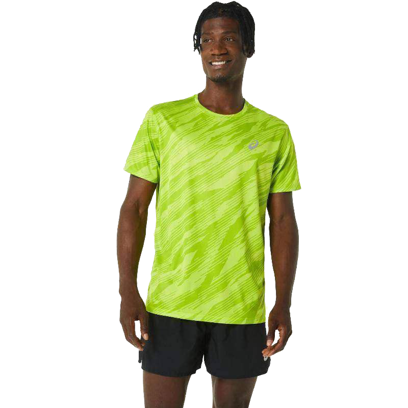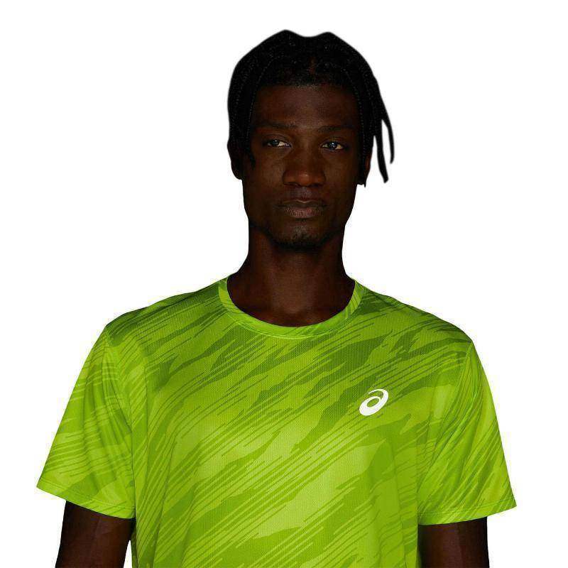 The Asics All Over Print t-shirt will not go unnoticed on the court! This bright crewneck features an all-over print, lightweight, moisture-wicking fabric made from recycled materials, and a reflective transfer Asics logo on the left chest.