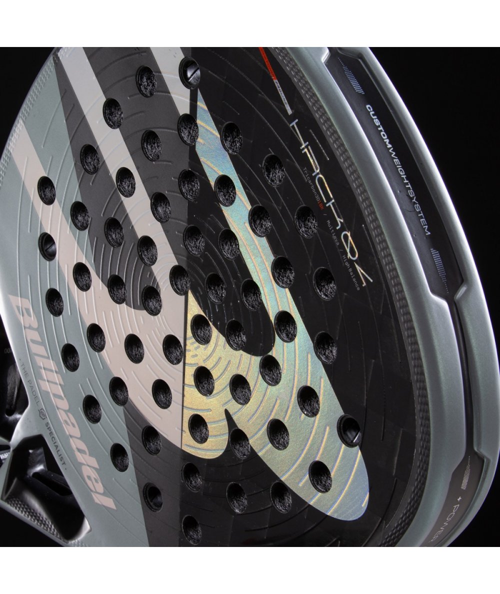 The Bullpadel HACK 04 features a new 3D rough surface with concentric circles, designed to optimize spin. Upon impact, this new rough surface generates greater friction, ensuring longer and more precise contact, resulting in winning spin, both on groundstrokes and subtle shots near the net.