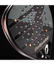 The hole pattern on a padel racket plays an important role in performance, influencing factors such as control, ball output, and power. The new hole pattern in the Hack 04 line has been redesigned with a concentric circle format, allowing for a more balanced distribution, greater flexibility across the racket face, and thus greater ball output and a larger sweet spot.
