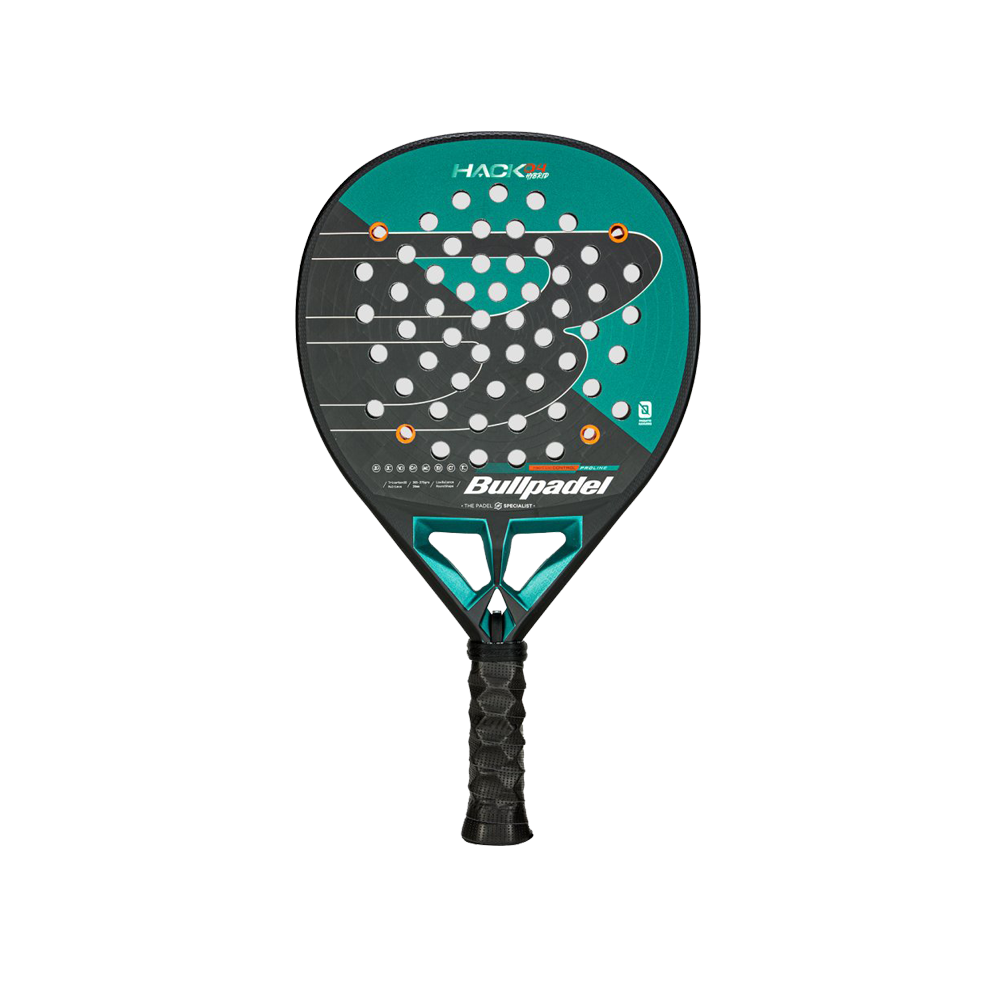 The Bullpadel HACK 04 Hybrid features a new 3D rough surface with concentric circles, designed to optimize spin effects. Upon impacting the ball, this new texture generates greater friction, ensuring longer and more precise contact, resulting in winning effects, both in shots from the back and subtle moves near the net.