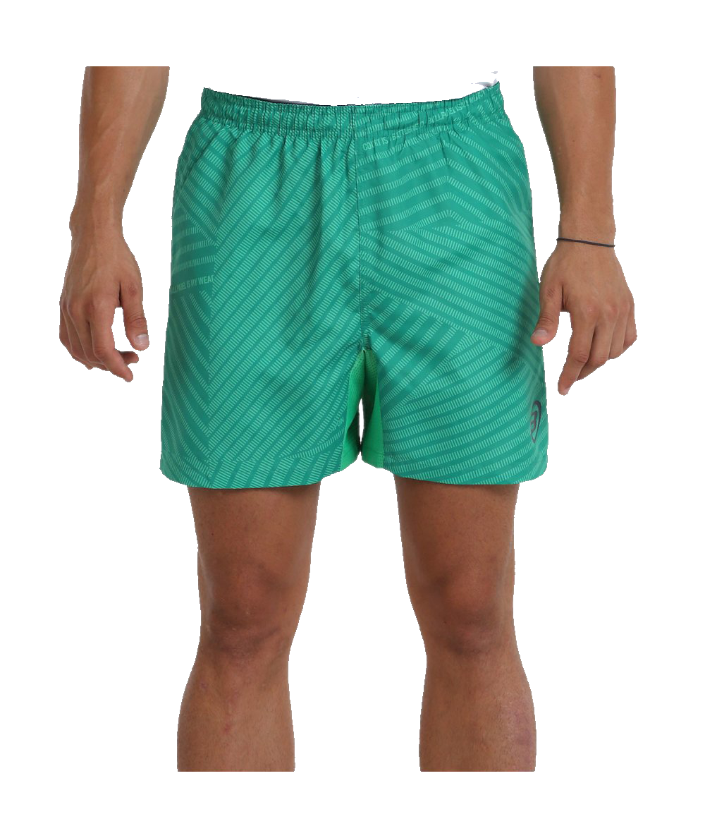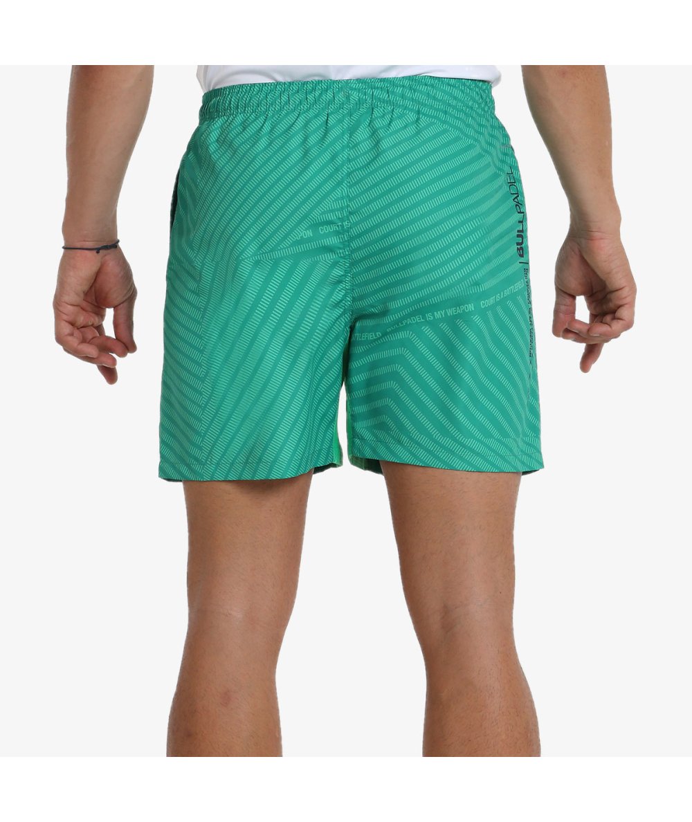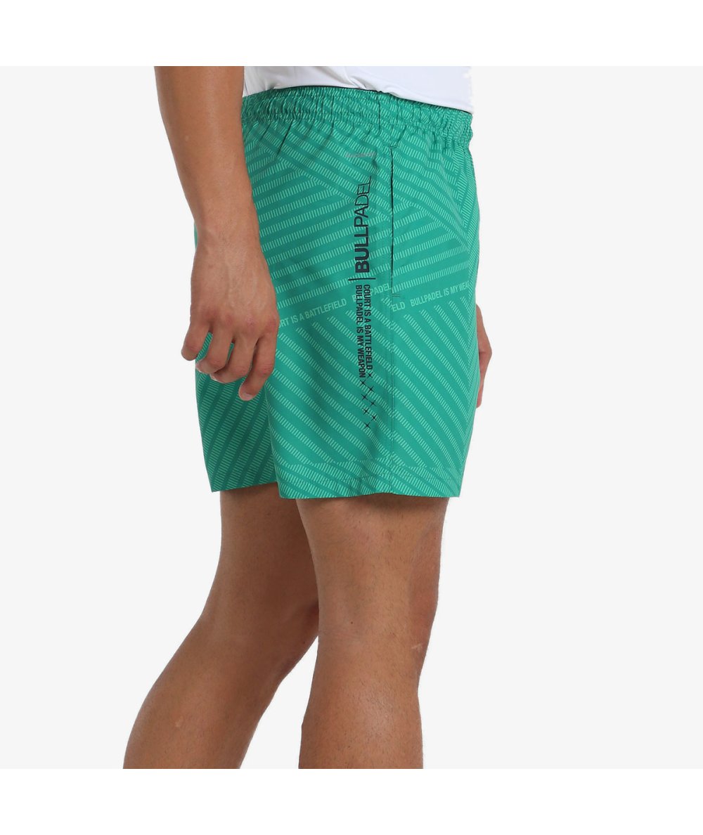 Printed Bermuda shorts made from plain weave polyester with a quick-drying finish. It incorporates an internal panty, a piece of elastic mesh in the crotch to facilitate freedom of movement and side pockets. Additionally, the design features graphics on the right side and logo on the front.