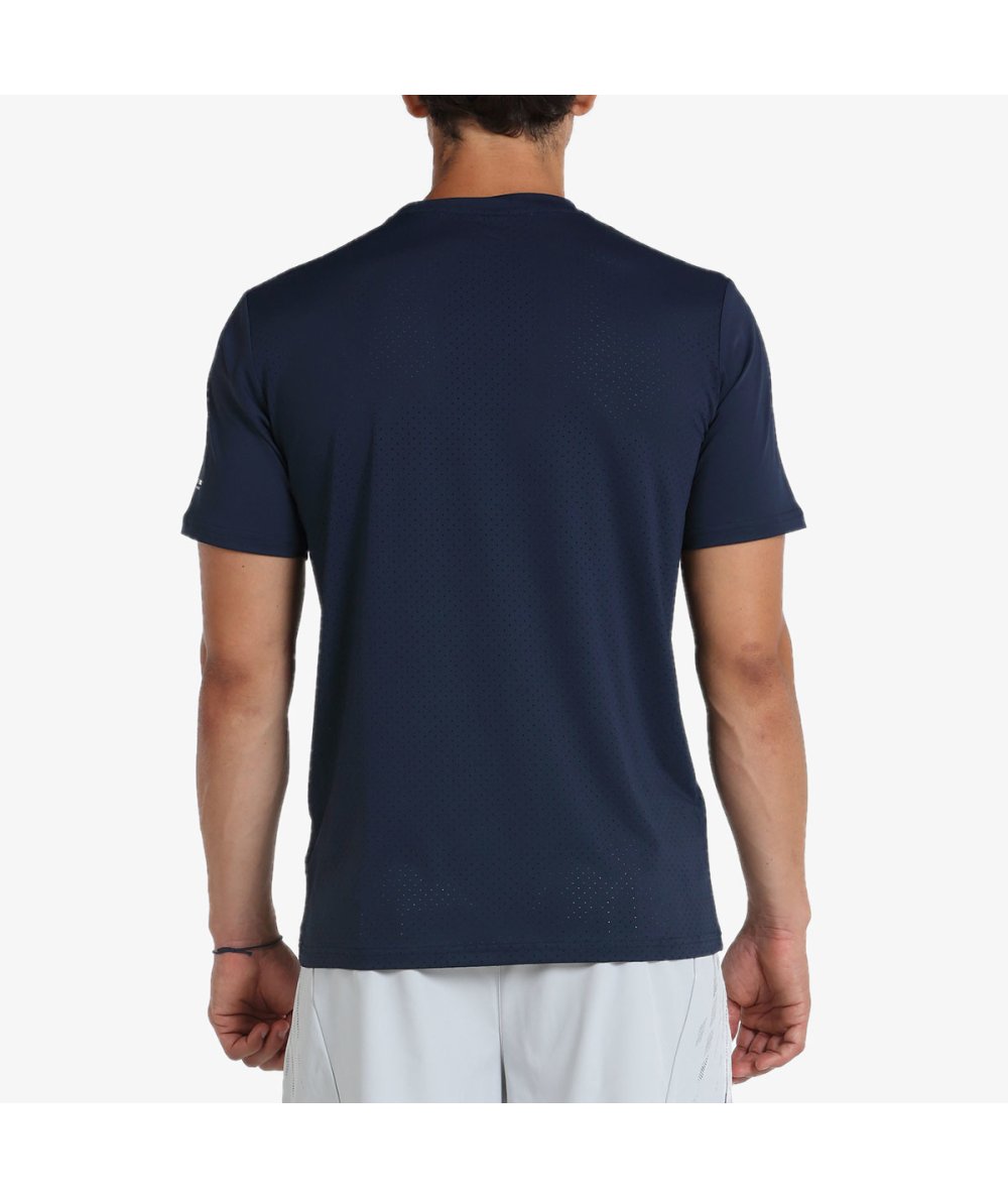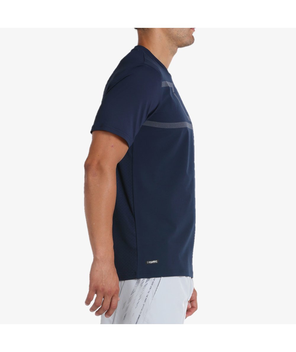 T-shirt that combines a bi-elastic flat fabric on the front, a polyester single with elastane on the sleeves and a multi-perforated polyester single with elastane on the back, all with a quick-drying finish. It has the line's signature on the sleeve, and in the front area it presents the logo and reflective decoration.