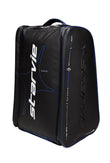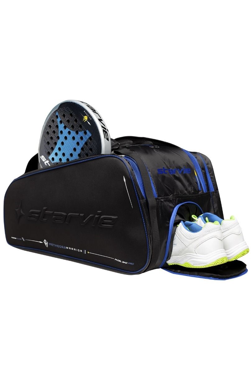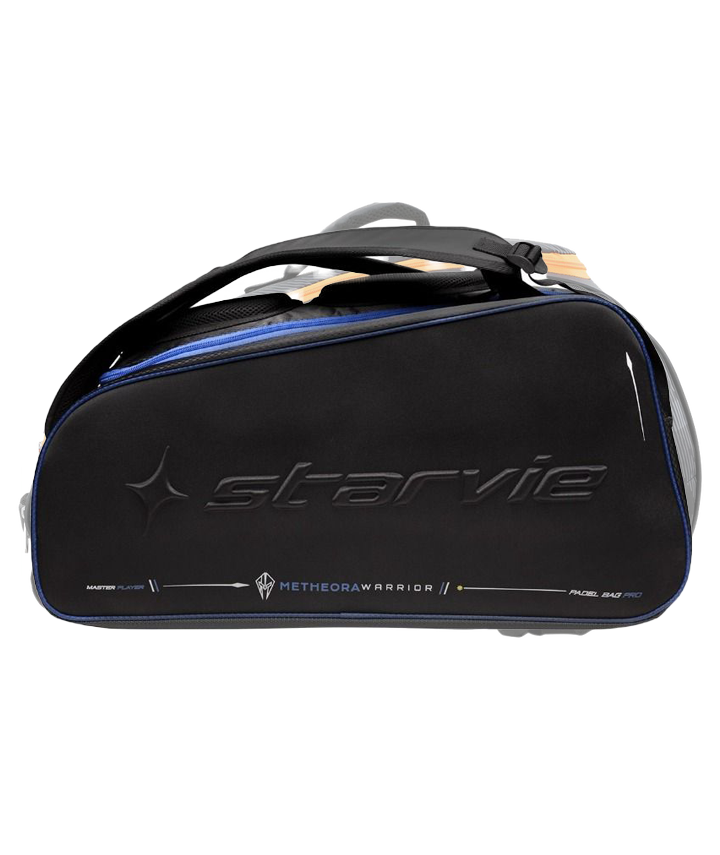 A design created in combination with the Metheora racket from the 2022 collection, with details in white and blue. As a new feature, this horizontal format racquet bag has the main zipper on the back where the reinforced It is a high capacity model with different pockets and two side compartments, one of them with thermal material to protect your racket. It includes an exclusive pocket for individual and ventilated shoes.