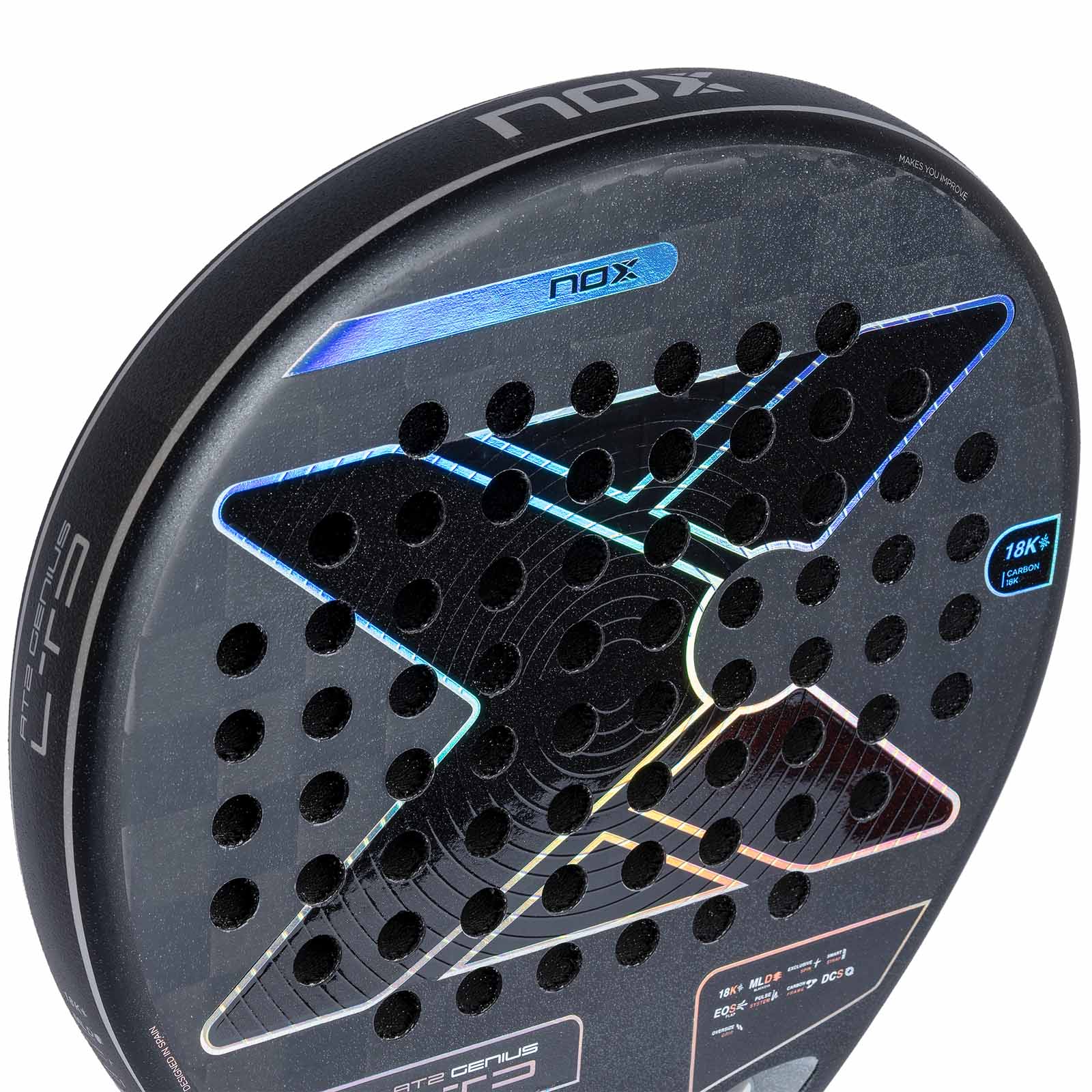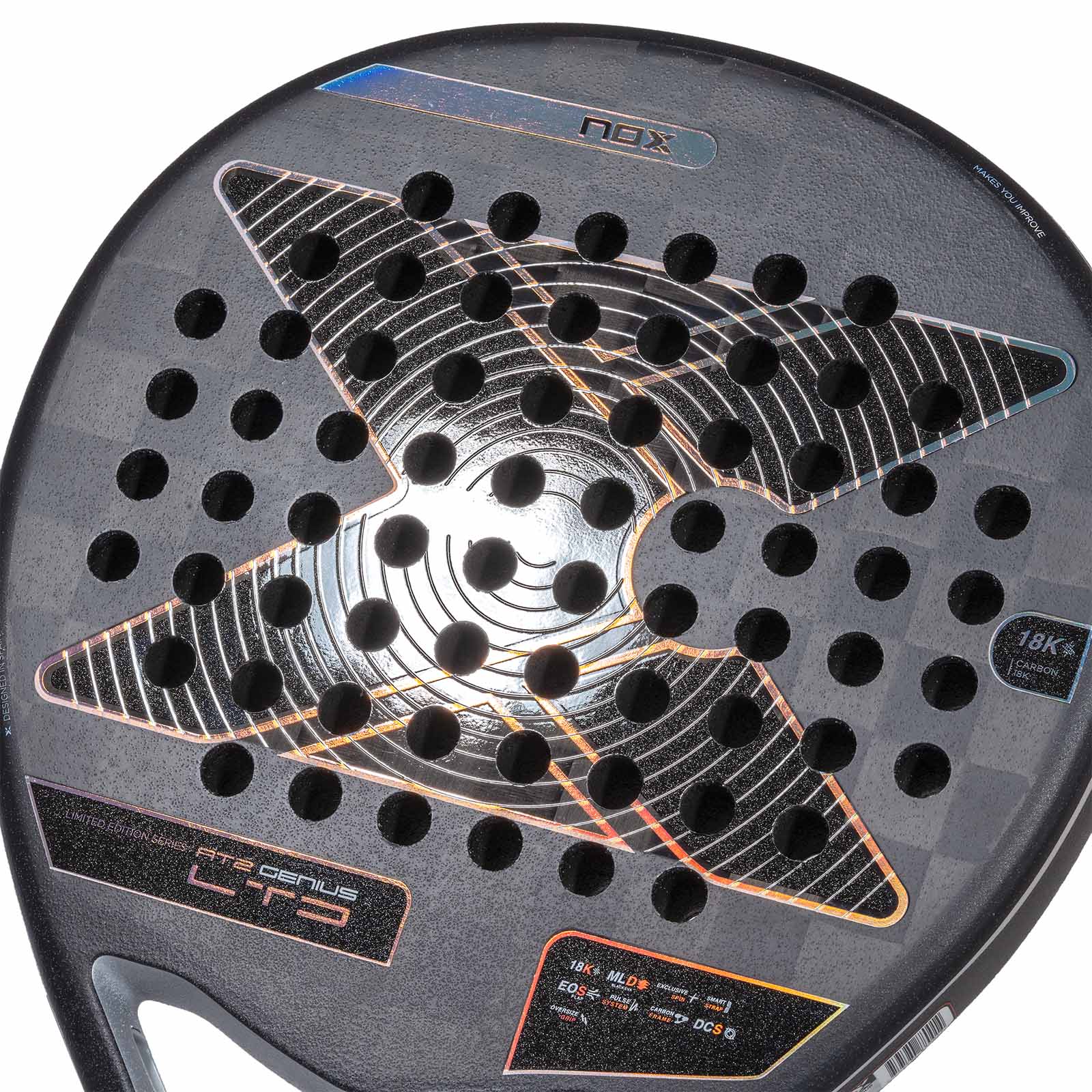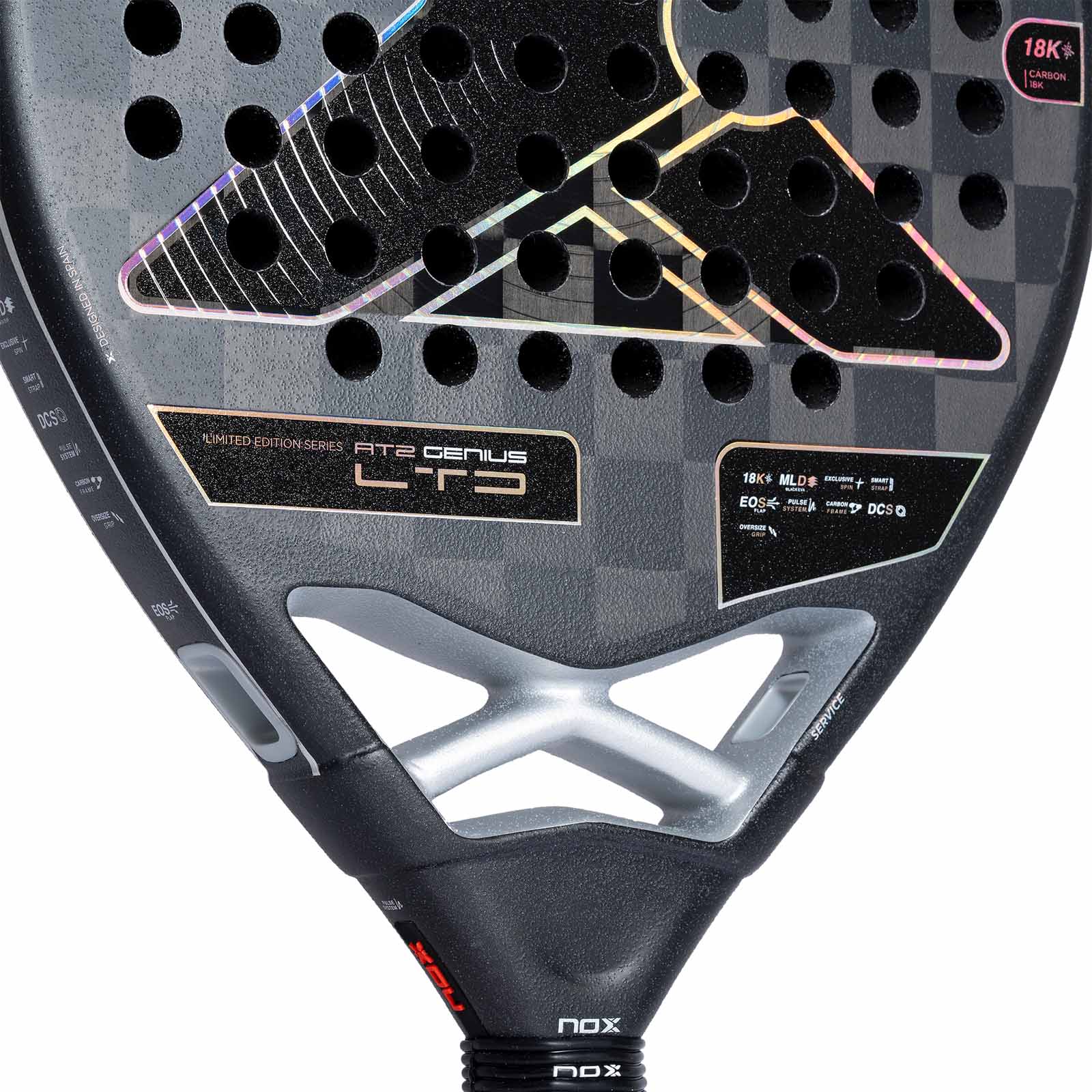 Following the resounding success of the AT10 LUXURY GENIUS ARENA, the new AT GENIUS LTD 2024 has been jointly developed with Agustín Tapia. It shares the same mold and MLD rubber that Agustín enjoys but introduces the novelty of 18K carbon fiber faces, providing added firmness in the touch with the ball.