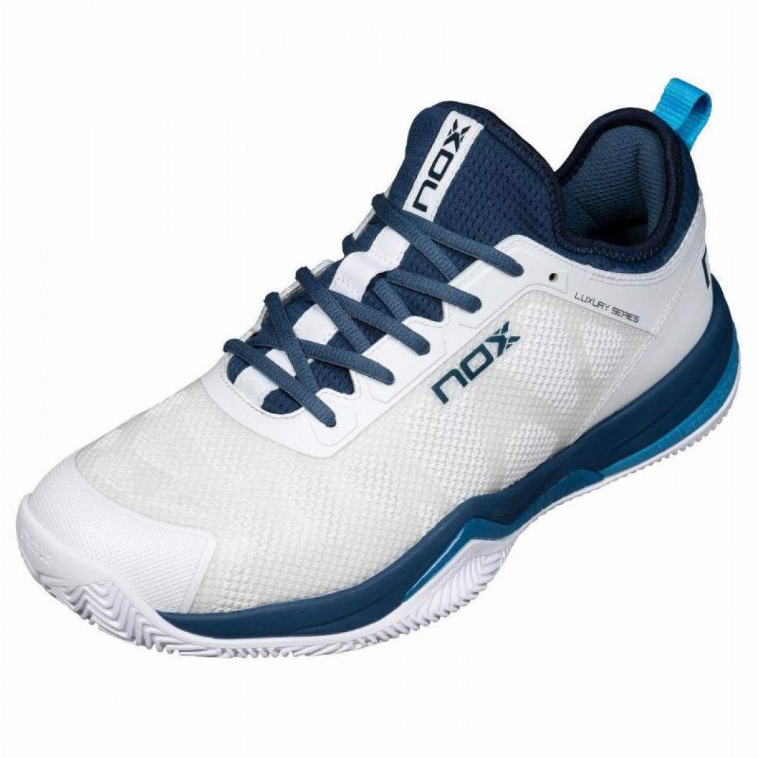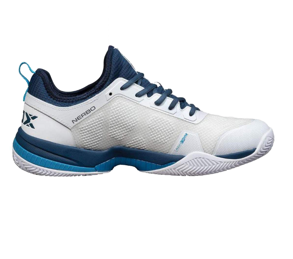 Description Get ready for the padel footwear revolution with the new Nox NERBO WHITE/SWEDISH BLUE 2024 edition padel shoes! Designed with the most advanced technology, these shoes not only elevate your performance on the court, but also take care of your health with every movement. Chosen by the Professionals: The Nox NERBO 2024 are the preferred shoes of the #teamNOX players. They rely on them for both training and official matches, ensuring optimal performance and maximum comfort at all times.Maximum Technology in Padel Footwear for the Best Performance