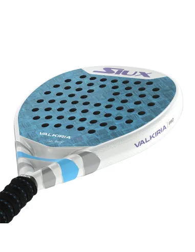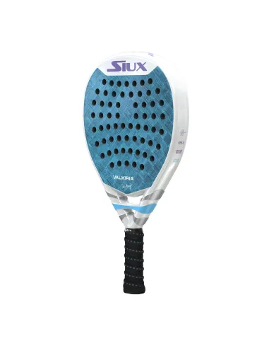 Discover the incredible new padel racket for the Portuguese professional player Sofia Araújo. The Siux Valkyrie Pro is a racket designed for professional or advanced level players who demand impeccable technical performance without sacrificing comfort. Thanks to its hybrid shape and medium balance, it offers a perfect combination of controlled power, maneuverability and comfort, making it a versatile and highly effective racket in all types of situations.