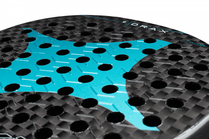 - NEW. Two layers of 12K carbon in the racket head. This fabric is more flexible than 3K carbon. This translates into a softer feel, providing great ball rebound, although the Drax racket is stiffened by the use of two layers of this carbon which provide extra power and control.