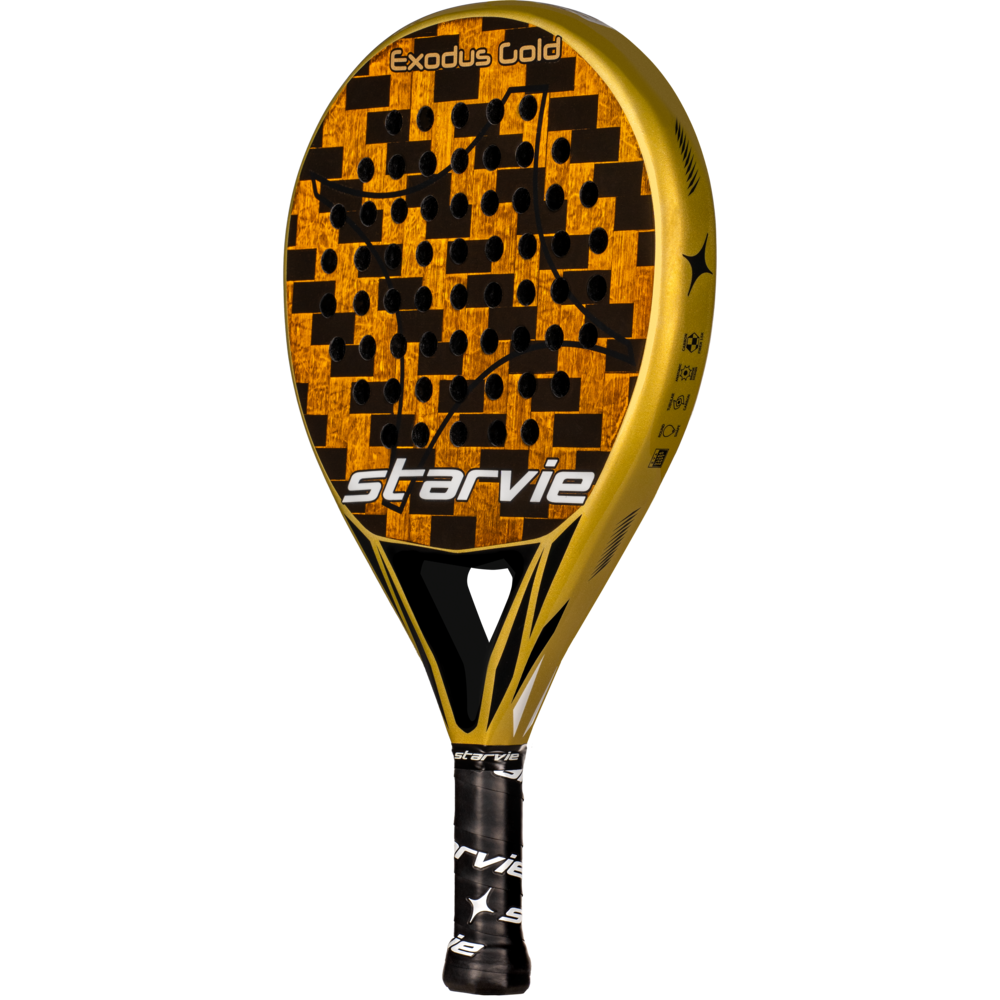 The Exodus Gold/Black racket combines style and functionality, offering a high-quality option for players looking for both elegance and performance on the court.