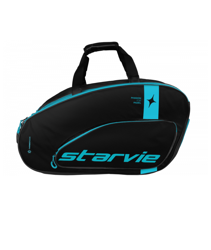 The perfect companion. The Racing Drax Padel Bag combines style and performance. Its black design with blue accents stands out on any court.